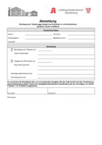 Für Ihre Anmeldung füllen Sie bitte das folgende Formular aus, fügen eine beglaubigte Abschrift der Approbationsurkunde bei und übersenden die Unterlagen an die Landesapothekerkammer Brandenburg.