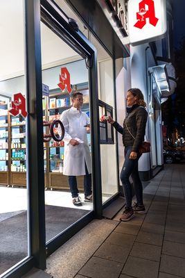 Ihre Apotheke vor Ort hält jederzeit Hinweise (in der Regel im Schaufenster oder im Eingangsbereich) auf die dienstbereiten Apotheken in Ihrer Umgebung für Sie bereit.