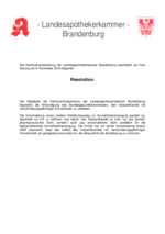 Die verfasste Apothekerschaft Brandenburgs beschließt auf ihrer Sitzung am 9. November 2016 folgende Resolution.