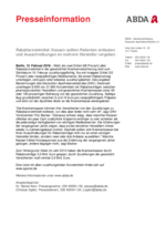 ![]() | 64 KB | Rabattarzneimittel: Kassen sollten Patienten entlasten und Ausschreibungen an mehrere Hersteller vergeben |
